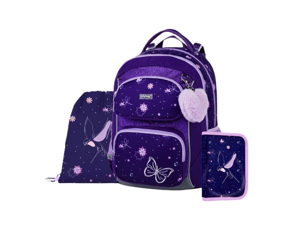 Výhodný 3dílný set batohu OXY JUMPER, penálu a sáčku na cvičky. Školní batoh OXY JUMPER je ideální volbou pro malé školáky, kteří potřebují pohodlný a odolný batoh. Má vylepšený anatomicky tvarovaný zádový panel a odpružený systém ramenních popruhů, díky kterému se batoh příjemně nosí i při větším zatížení.Dvě prostorné komory nabídnou dostatek místa na učebnice, sešity i další školní potřeby. Po stranách najdete otevřené meshové kapsy na láhev a jiné drobnosti. Samozřejmostí je zpevněné nepromokavé dno, velké množství reflexních prvků a praktická přední kapsa na svačinový box. Batoh má nastavitelné ramenní popruhy, přítažné popruhy a hrudní popruh pro rovnoměrné rozložení váhy. Hmotnost činí 990 g, objem 23 l a nosnost 8 kg. Součástí setu je také jednopatrový penál a sáček na cvičky, sladěné do stejného designu.