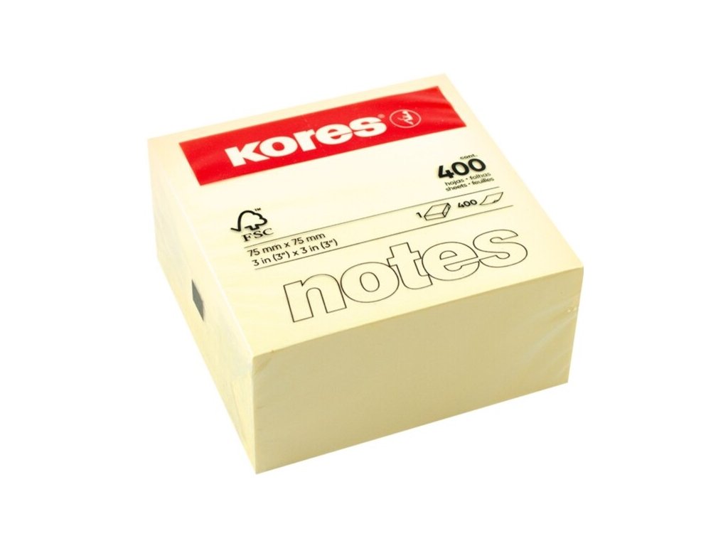 Bloček KORES 75x75mm 400 listů žlutý