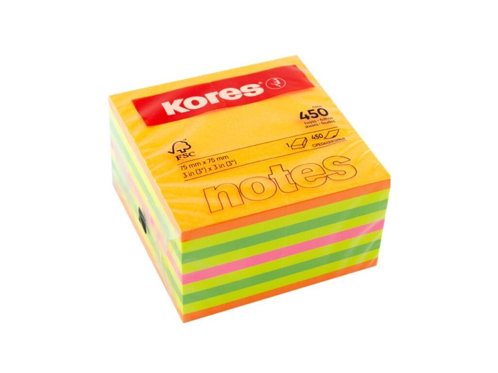 Bloček KORES Cubo Summer 75x75mm 450 listů neon