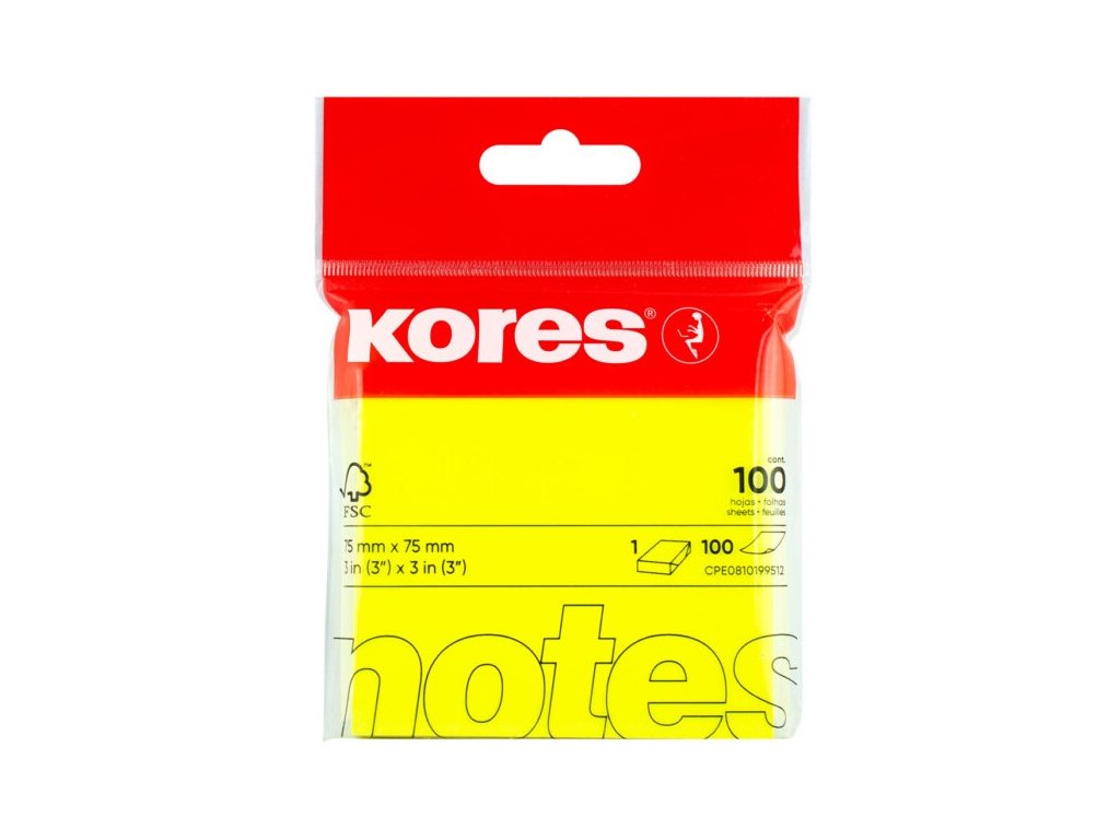 Bloček KORES neon 75x75mm 100 listů žlutý
