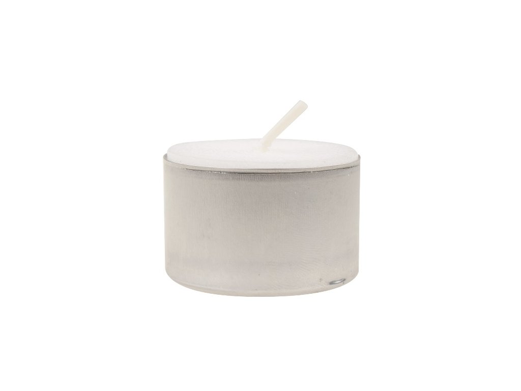 Čajové svíčky můžete použít do aromalamp, svícnů či luceren. Klasická svíčka v hliníkovém kalíšku, bez vůně.