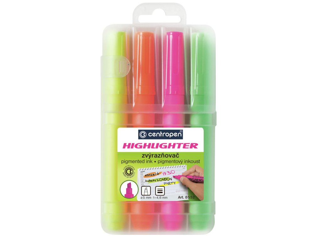 Sada celofluorescenčních zvýrazňovačů s velkým zásobníkem inkoustu pro zvýraznění textu vhodné pro všechny druhy papíru, včetně faxového a samokopírovacího. Klínový hrot. Sada obsahuje 4 barvyBuďte první, kdo napíše příspěvek k této položce.