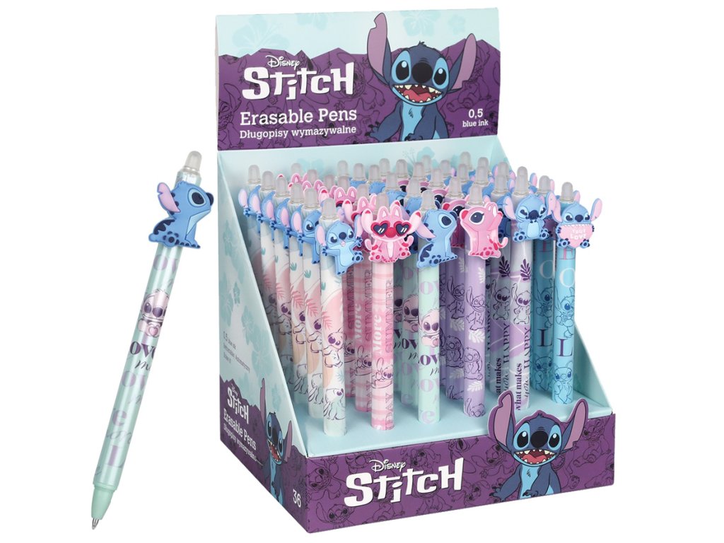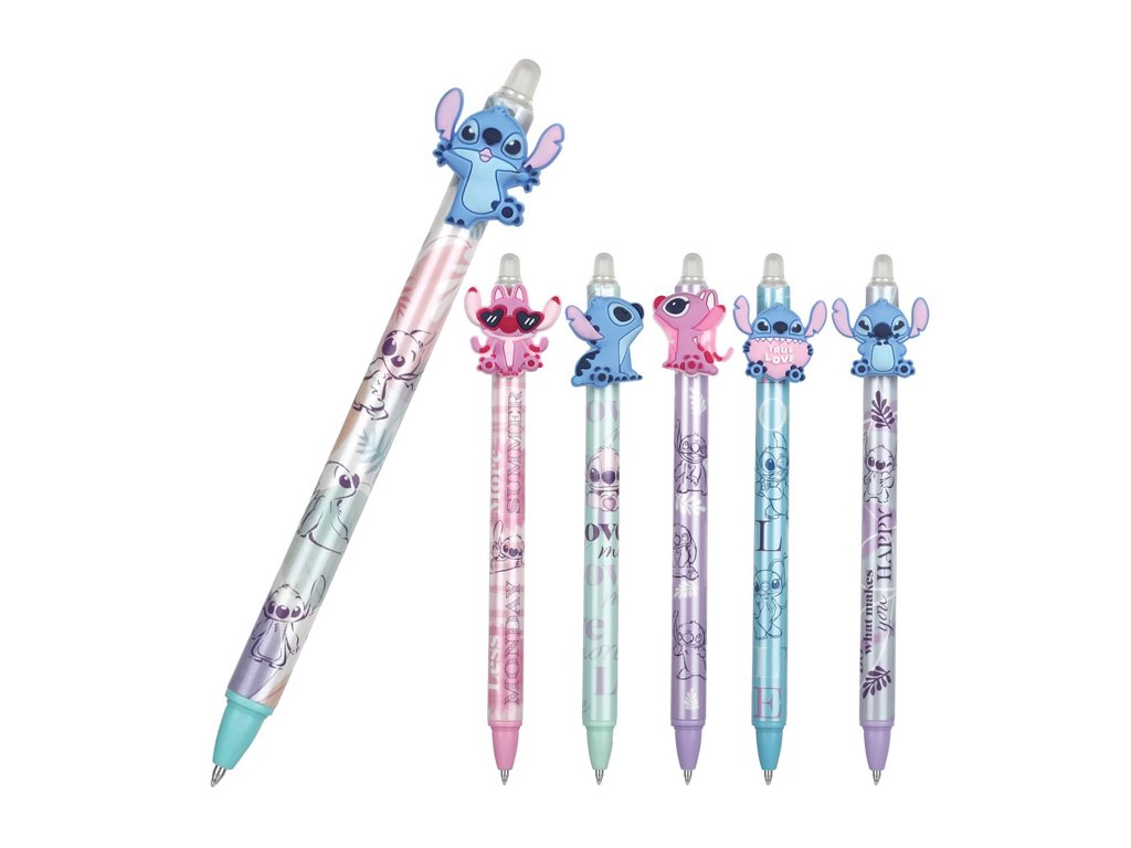 Praktická gumovatelná pera v pastelových barvách s veselými motivy mimozemského Stitche. Kvalitní inkoust lze v případě potřeby jednoduše vygumovat a přepsat.