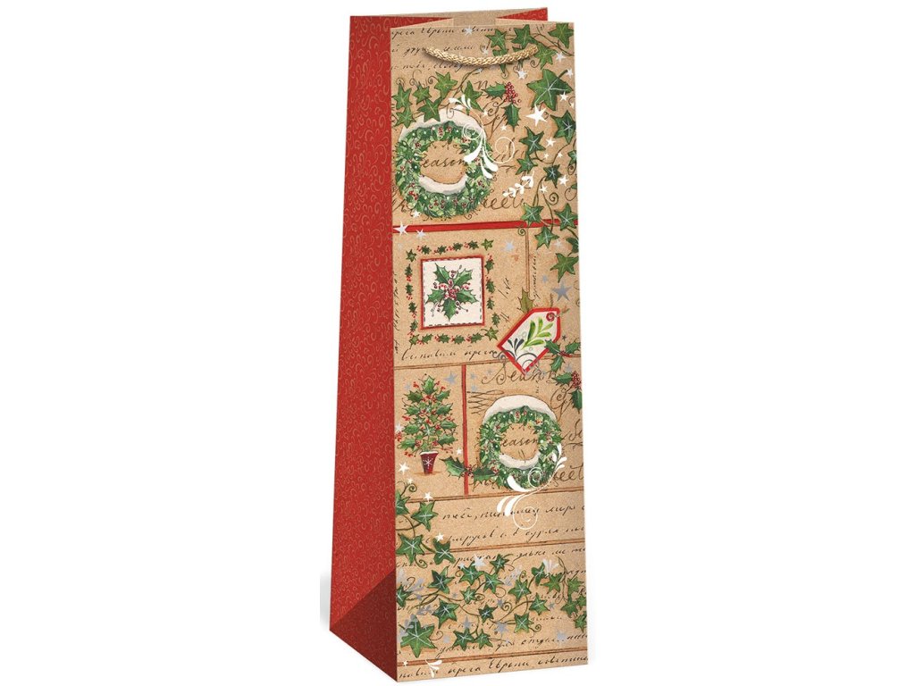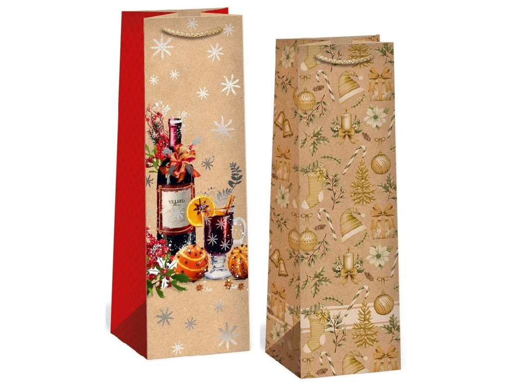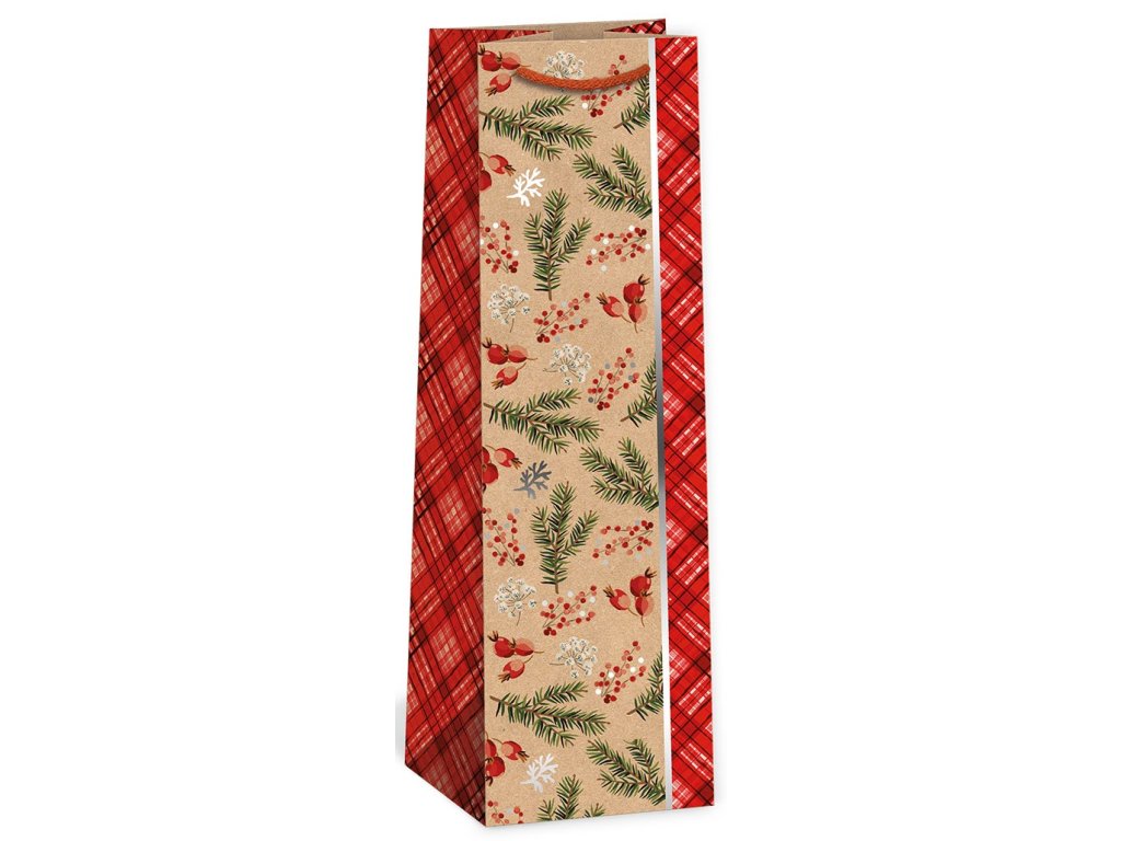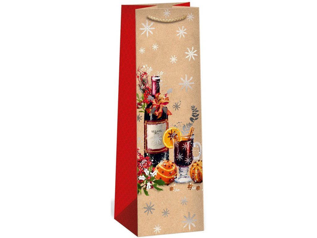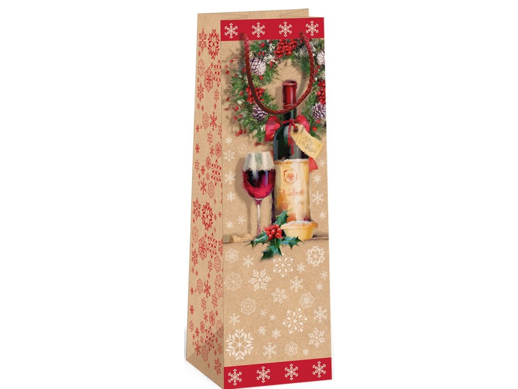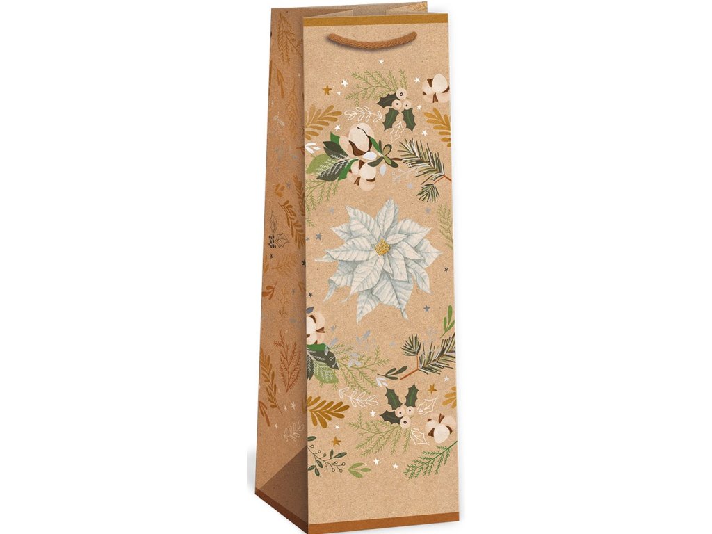 Vánoční papírová dárková taška NATUR s originálním designem na víno nebo šampaňské.