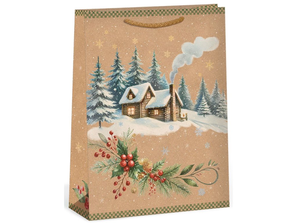 Vánoční papírová dárková taška NATUR s originálním designem.