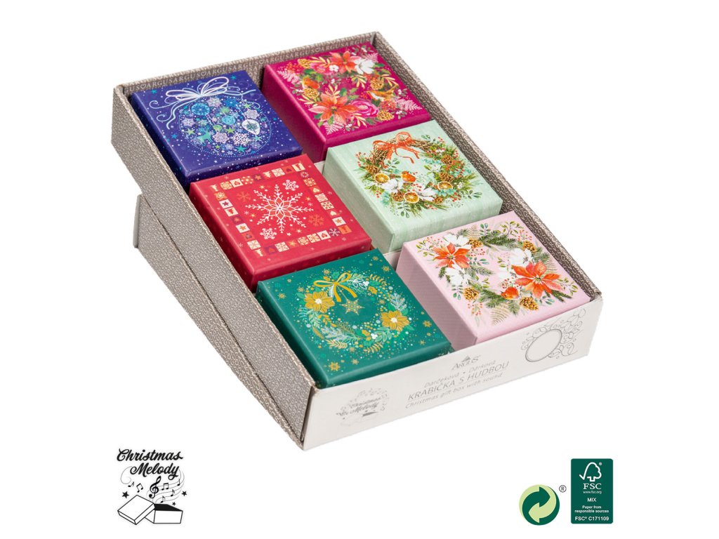 Balení mixu vánočních dárkových krabiček s hudbou.