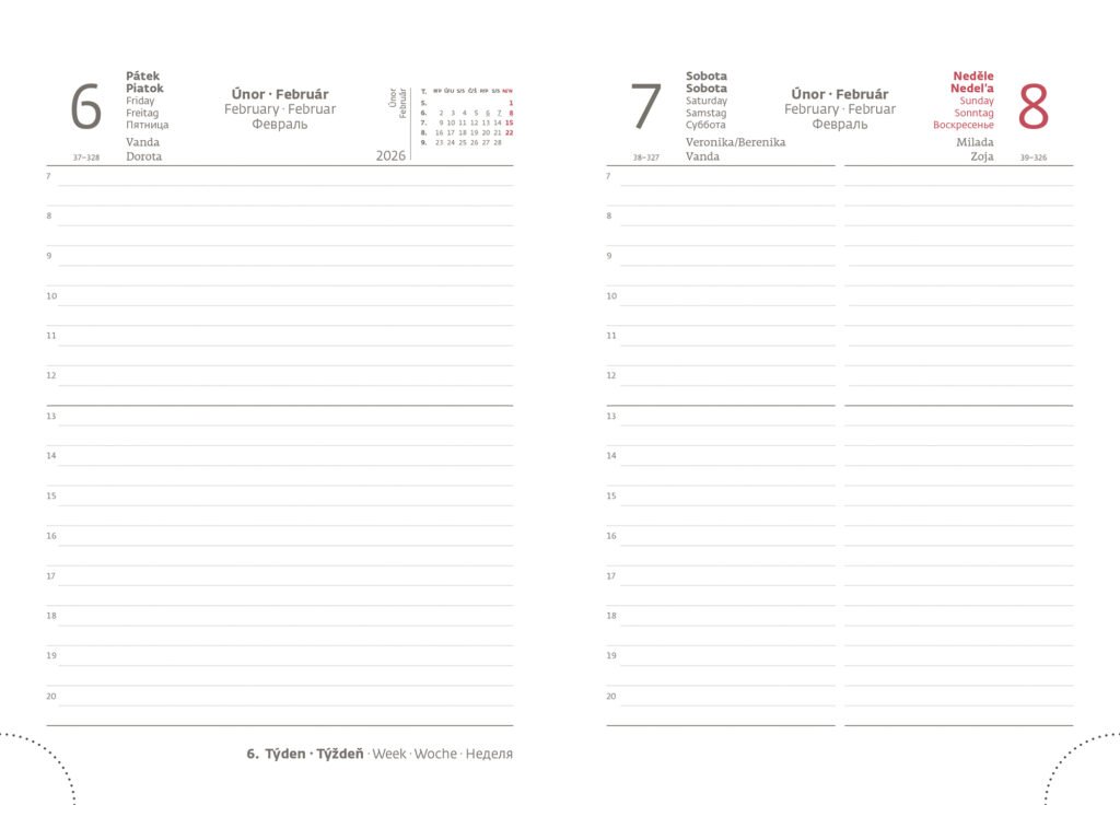 Diář Print. Matná koženka představuje kvalitní, na dotek příjemný a zároveň velmi oblíbený materiál. Tloušťka materiálu umožňuje dosáhnout perfektních výsledků při sleporažbě bez fólie. .Diář obsahuje: osobní údaje, plánovač dovolené (měsíční přehled), plánovací kalendář, telefonní předvolby, státní svátky České a Slovenské republiky, mezinárodní svátky, roční výhled, denní layout, adresář, mapa Evropy a České a Slovenské republikyBuďte první, kdo napíše příspěvek k této položce.