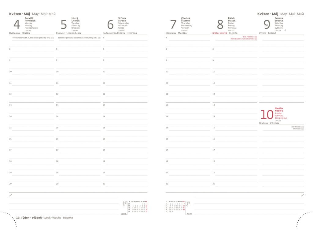 Diáře Gommato Desky diáře jsou zhotoveny z univerzálního matného materiálu na bázi zušlechtěného papíru, který je bez struktury a tím neruší vzhled samotného produktu. Doporučujeme tamponový tisk. .Diář obsahuje: osobní údaje, plánovač dovolené (měsíční přehled), plánovací kalendář, telefonní předvolby, státní svátky České a Slovenské republiky, mezinárodní svátky, roční výhled, týdenní layout, adresář, mapa Evropy a České a Slovenské republikyBuďte první, kdo napíše příspěvek k této položce.