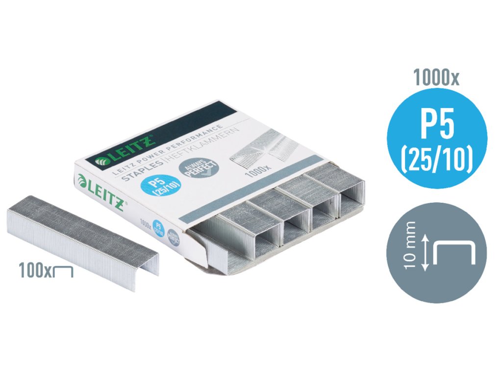 Kvalitní ocelové drátky 25/10. Doporučovány pro velkokapacitní sešívačku Leitz 5552.