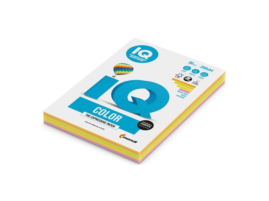 Kolekce barevných papírů IQ COLOR poskytuje jedinečné využití pro každý den. K dispozici máte 29 úžasných barev, jejichž prostřednictvím dosáhnete originálních efektů. Barvy jsou rozděleny na pastelové, intenzivní, trendové a neonové. Jedině IQ COLOR v sobě kombinuje vlastnosti špičkových papírů s estetickými nároky. Výborně se hodí pro použití v kopírovacích strojích, laserových i inkoustových tiskárnách. Papíry vynikají vysokou barevnou stálostí, která zaručuje perfektní výsledky. Jednotlivé balíčky jsou baleny v transparentním balení, které současně umožňuje opakované otevírání a uzavírání.