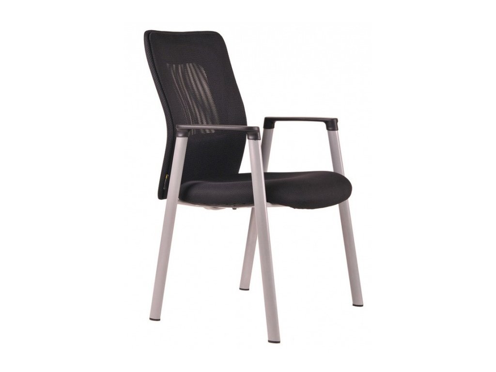 Pohodlná konferenční židle s pevnou konstrukcí v šedé barvě. Ergonomicky tvarovaný síťovaný opěrák navádí ke správnému sezení, a zajišťuje celodenní větrání zad. Pohodlný černý sedák s pěnovou výplní zajistí maximální pohodlí i při dlouých jednáních. Plastové područky zafixují ruce ve správné poloze.