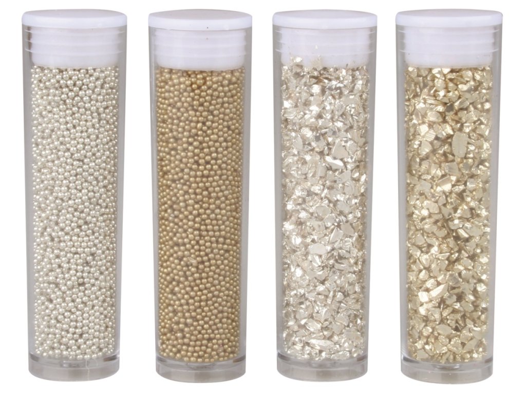 Využijete je při tvorbě věnců, ozdob, přáníček nebo jiných DIY projektů, kde chcete dodat stříbrný lesk a strukturu, kombinace stříbrných kamínků a kuliček, balení v praktických plastových tubách.