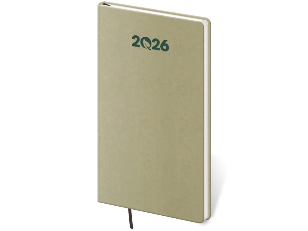 Ekologické diáře ECO Ekologické desky diáře jsou recyklovatelné, jejich materiál je biologicky odbouratelný a při jejich výrobě byly použity obnovitelné energie. Celý diář má certifikaci FSC™. Při výrobě povrchu desek bylo až 55 % celulózy ze stromů nahrazeno biologicky rozložitelným odpadem a recyklovanými vlákny. Konkrétně byly použity zbytky kávy, levandule a kiwi, recyklovaná vlákna a celulóza z šetrně obhospodařovaných lesů. Povrchový materiál je vyráběn pomocí obnovitelné energie, přičemž vzniklé emise jsou plně kompenzovány..Diář obsahuje: osobní údaje, plánovač dovolené (měsíční přehled), plánovací kalendář, mezinárodní svátky, roční výhled, týdenní layout, adresářBuďte první, kdo napíše příspěvek k této položce.