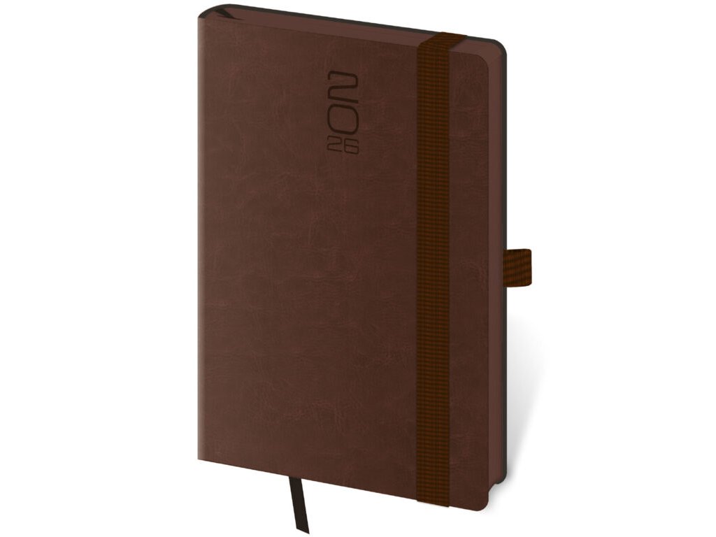 Kapesní diář Memory tmavě hnědý s gumičkou