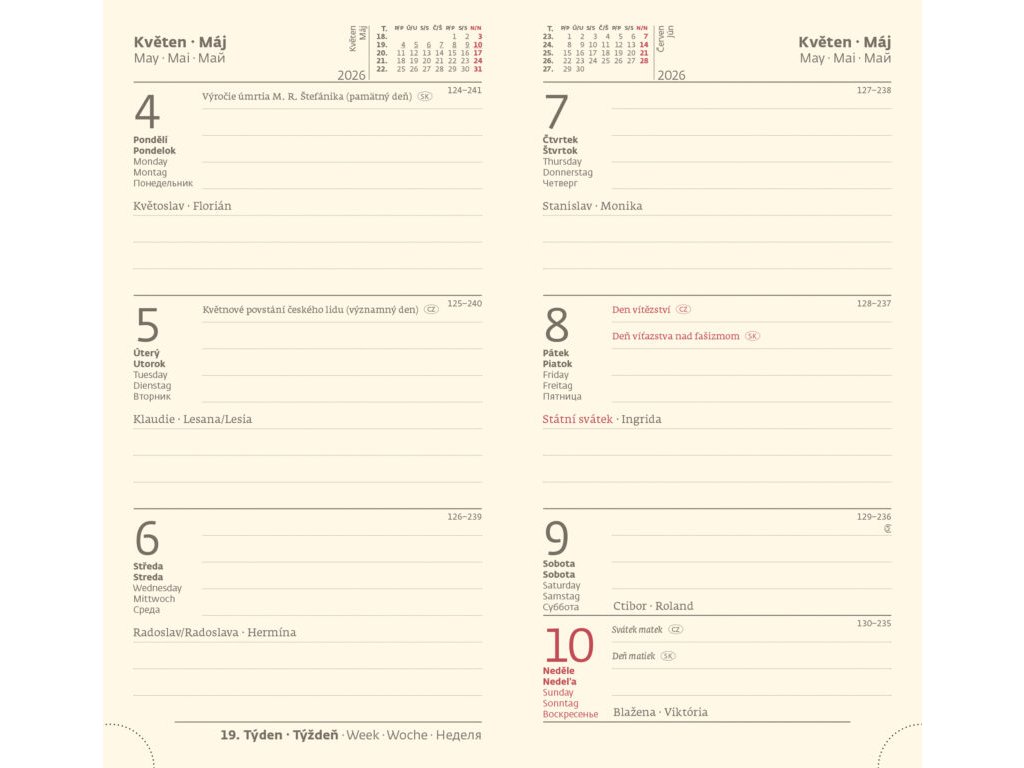 Diáře Nebresca Jde o vysoce kvalitní, na dotek příjemnou koženku, jež dokonale imituje kůži. Jedná se o lesklý materiál, do kterého se výborně razí bez fólie. .Diář obsahuje: osobní údaje, plánovač dovolené (měsíční přehled), plánovací kalendář, mezinárodní svátky, roční výhled, týdenní layout, adresářBuďte první, kdo napíše příspěvek k této položce.