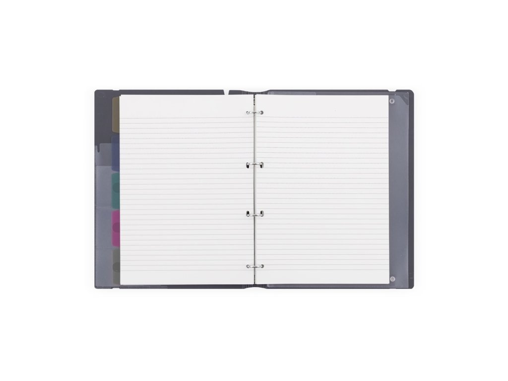 Tento blok nabízí praktické rozřaďovače a vnitřní náplň: 30 stran linka, 30 stran tečka, 30 stran čisté, bez potisku. S uzavíráním na elastickou gumičku a kapsami pro vizitky. Čtyřkroužkový mechanismus umožňuje snadné přidávání nebo vyjímání listů.Buďte první, kdo napíše příspěvek k této položce.