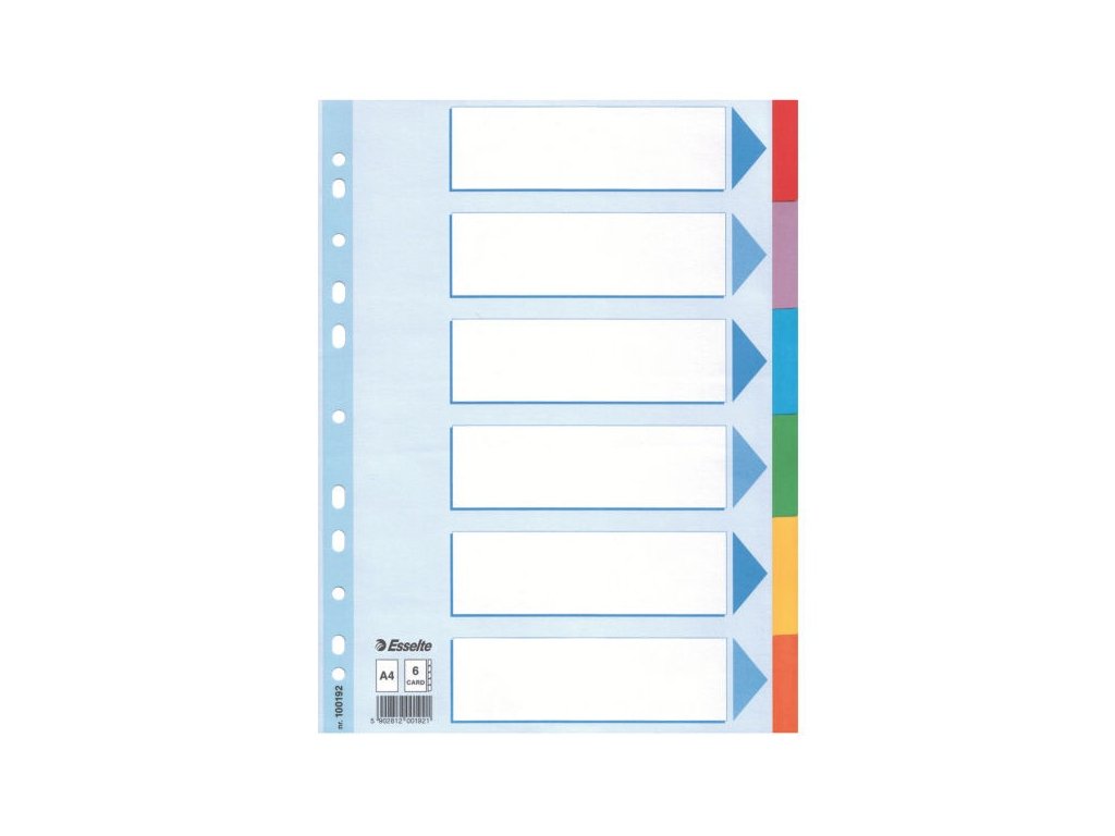 Rozlišovače ze silného recyklovaného kartonu pro třídění dokumentů v pořadačích či deskách do formátu A4 s popisovatelnou titulní stranou. Jednotlivé stránky v různých barvách.Doplňkové parametry
