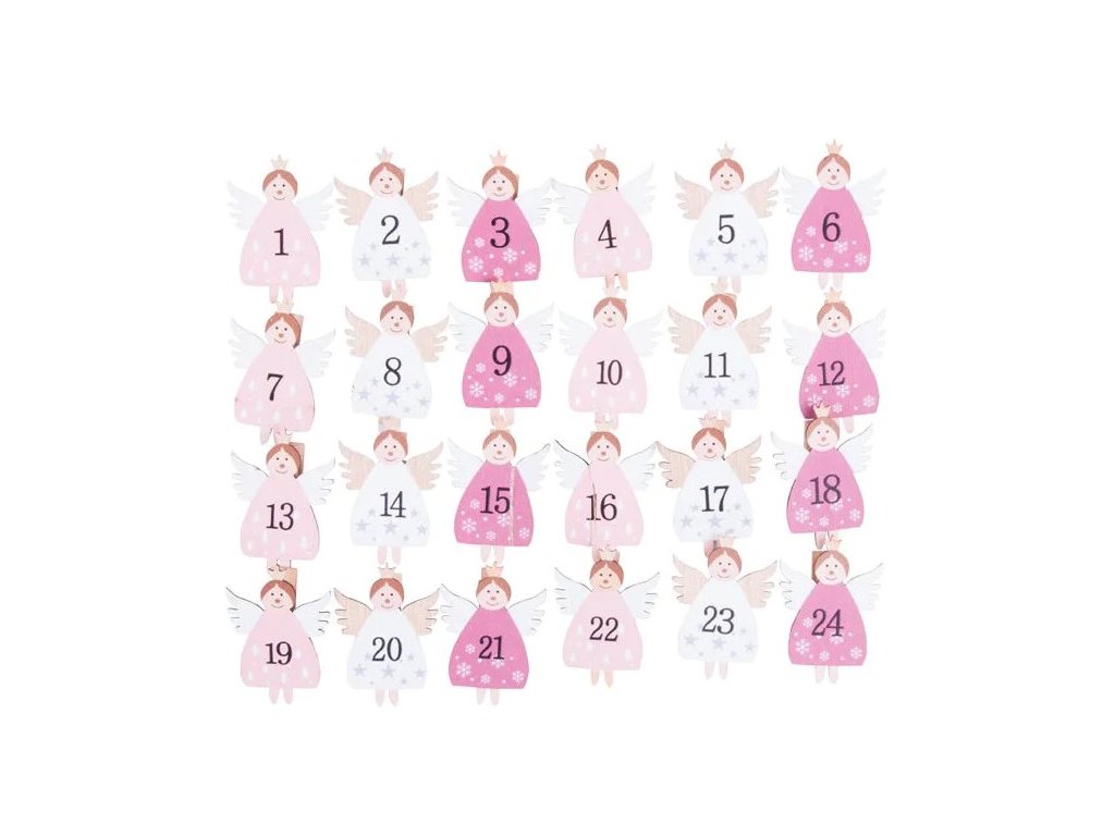 Dřevěné kolíčky s andílky. Vytvořte si originální, adventní kalendář pomocí dřevěných kolíčků se soby s čísly. Navodí Vám tak tu správnou vánoční atmosféru.