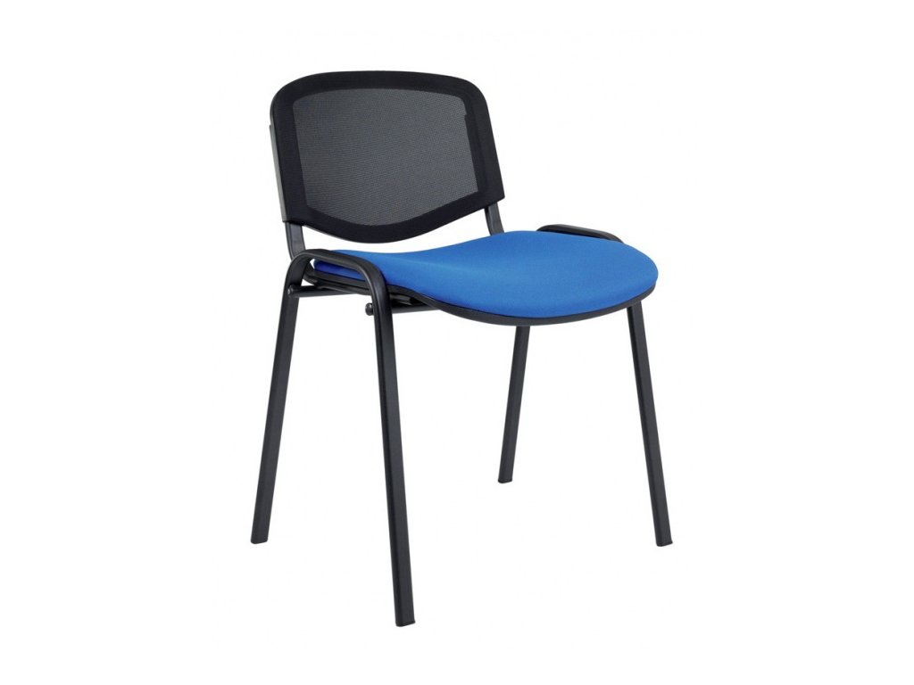 Jednací čalouněná židle s lakovaným chromovaným ocelovým rámem oválného profilu, a síťovaným opěrákem, vhodná do každé kanceláře či konferenční místnosti. Maximální stohovatelnost je 5 kusů. Sedák i síťovaný opěrák mají ergonomický tvar zajišťující maximální pohodlí. Spodní část opěráku a sedáku chrání plastový kryt. Potah ve světle modré barvě. Židle je bez područek. Je však možné je doobjednat.