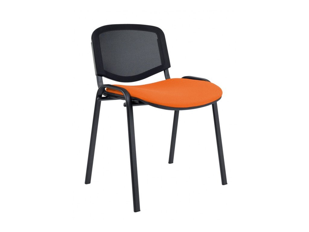 Jednací čalouněná židle s lakovaným chromovaným ocelovým rámem oválného profilu, a síťovaným opěrákem, vhodná do každé kanceláře či konferenční místnosti. Maximální stohovatelnost je 5 kusů. Sedák i síťovaný opěrák mají ergonomický tvar zajišťující maximální pohodlí. Spodní část opěráku a sedáku chrání plastový kryt. Potah v meruňkové barvě. Židle je bez područek. Je však možné je doobjednat.