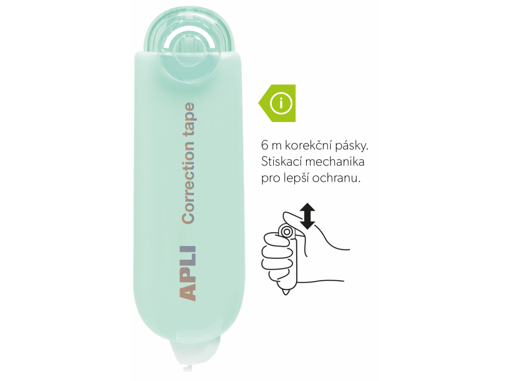 Oprav chyby snadno, čistě a rychle. Korekční strojek nabízí snadné použití bez zanechání stop a nutnosti čekání na zaschnutí. Stiskací mechanismus zaručí rychlé vysunutí pásky a chrání špičku před poškozením. Skvěle se hodí do školního penálu nebo na kancelářský stůl.