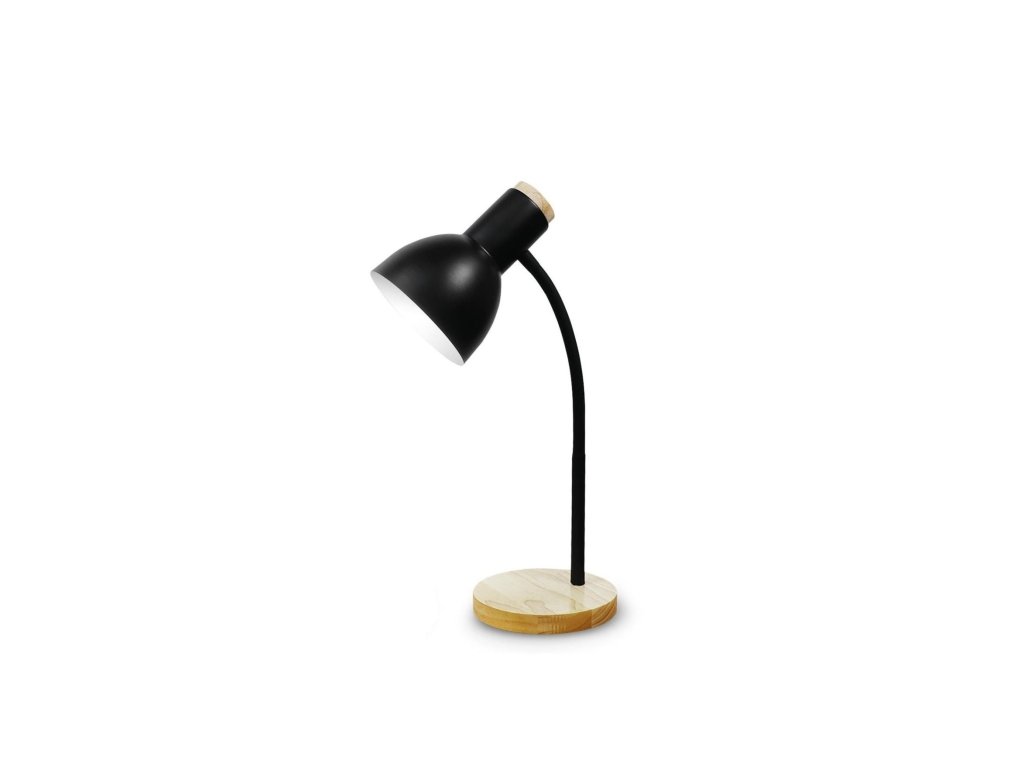 Stolní lampa PDL333 je stylový model s dekorativními prvky, který kombinuje kovovou konstrukci a dřevěnou základnu. Je k dostání v bílé i černé variantě.