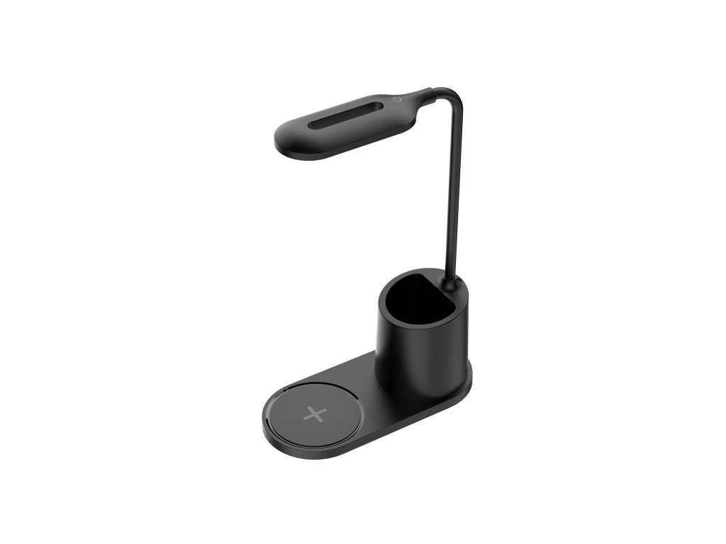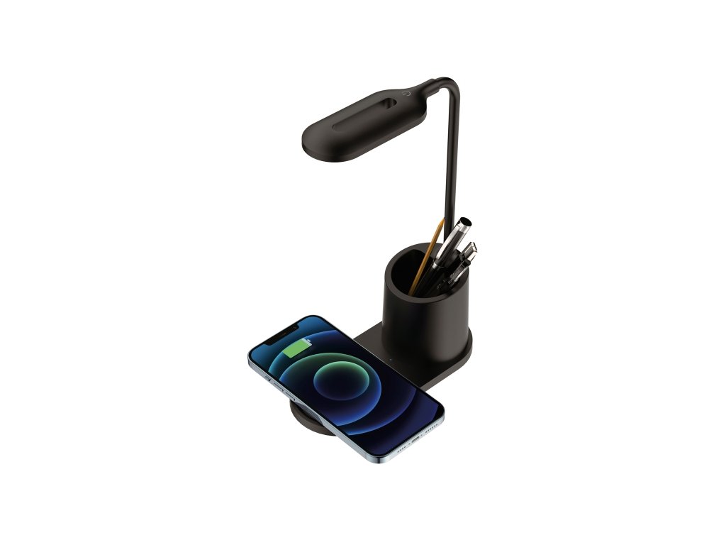 Lampa navíc nabízí integrovanou bezdrátovou nabíječku telefonu, která pracuje na základě standardu Qi. Stačí položit smartphone na vyznačenou plochu základny a zařízení se začne nabíjet. Tato plocha je vybavena měkkou gumovou podložkou, aby se předešlo poškrábání mobilu.