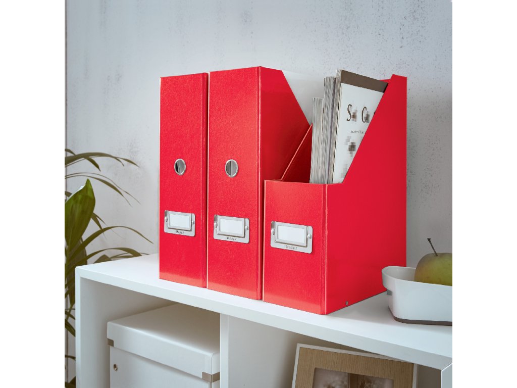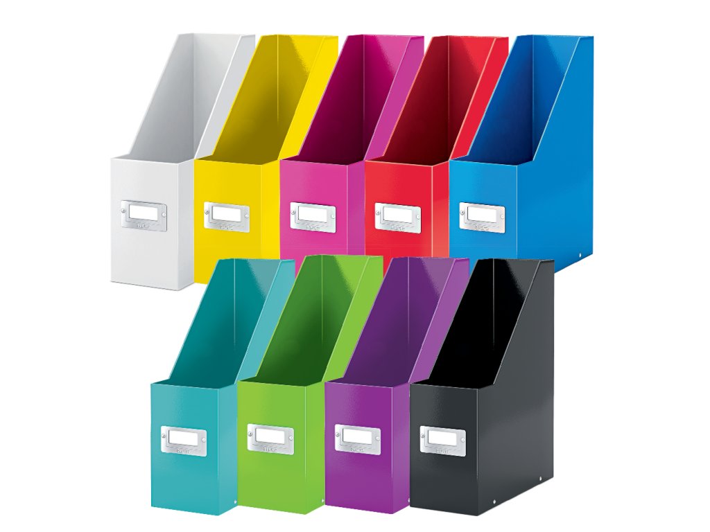 Stojan na časopisy s rámečkem na popisovací štítek na přední a zadní straně pro jasný popis obsahu. Skládací pro úsporu místa, pokud se nepoužívá. Vyrobeno ze silného kartonu s laminovaným povrchem pro lepší a trvalejší ochranu. Moderní design, který se bude skvěle vyjímat v každé kanceláři i doma.