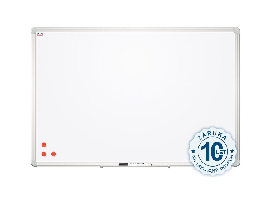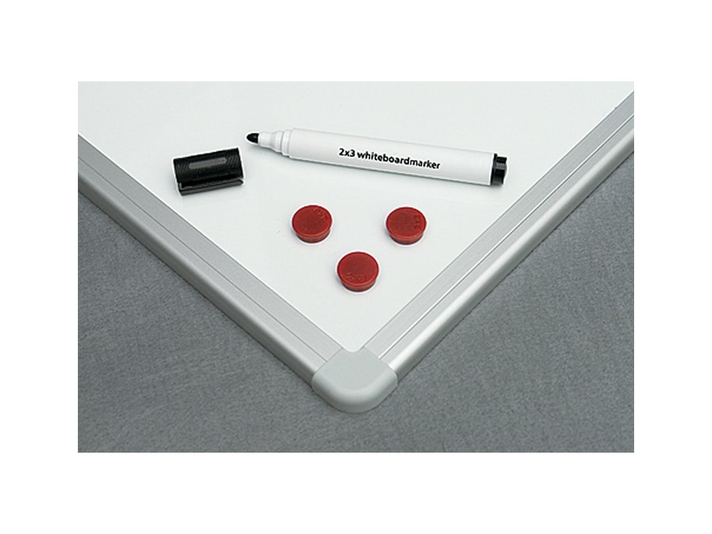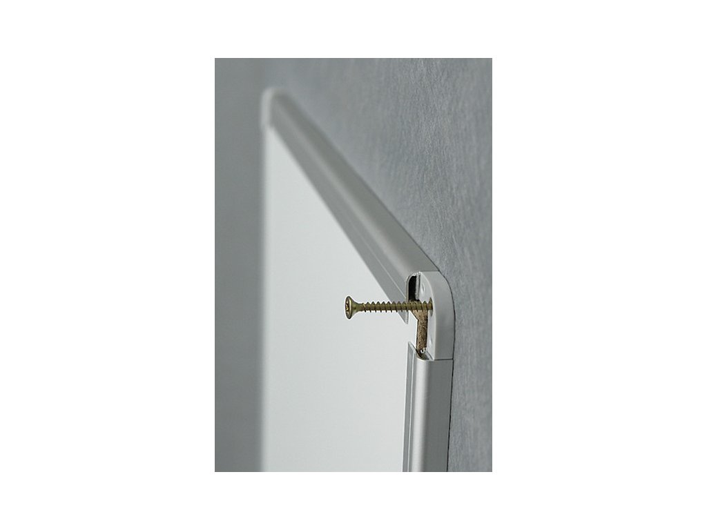 Tabule magnetické bílé s prémiovým hliníkovým rámem galvanizovaným stříbrem pro vyšší oděruvzdornost v profilu ALU 23. Jsou popisovatelné za sucha stíratelnými popisovači a součástí balení je odkládací lišta a sada pro připevnění na zeď.