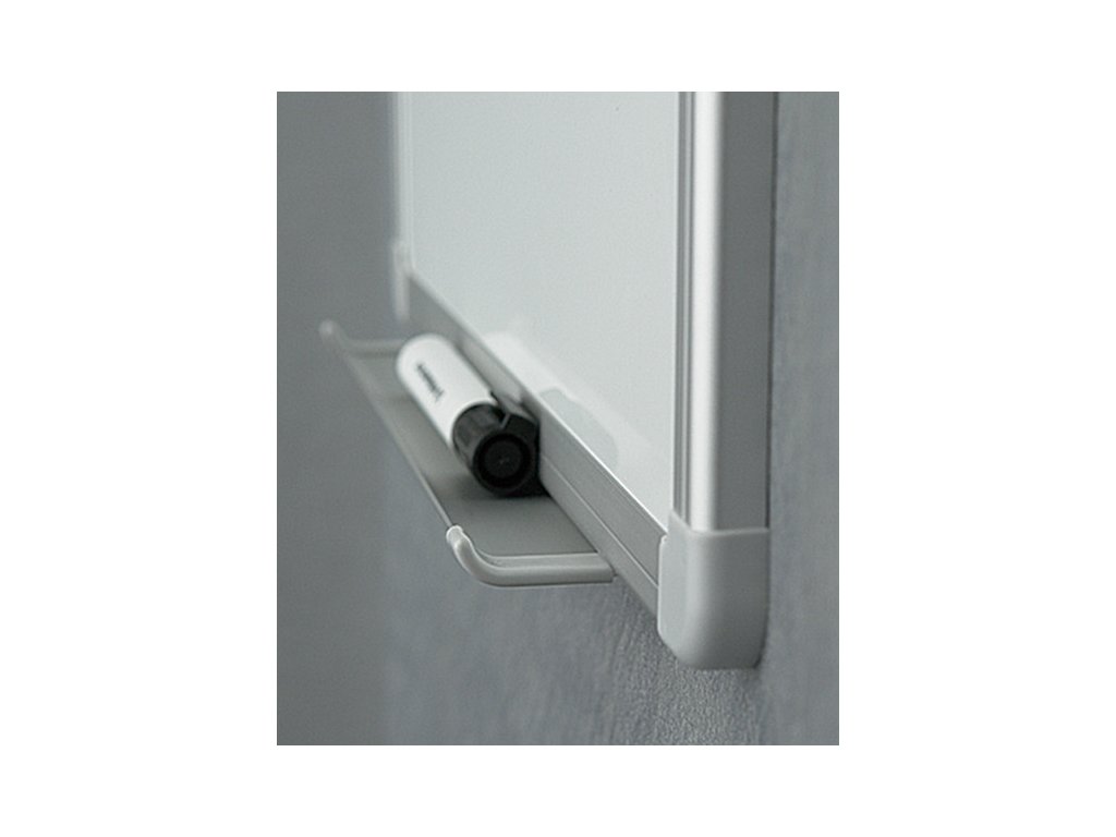 Bílá magnetická tabule s možností popisování pouze popisovači pro bílé tabule. Hliníkový rám se zaoblenými rohy včetně odkládací lišty.