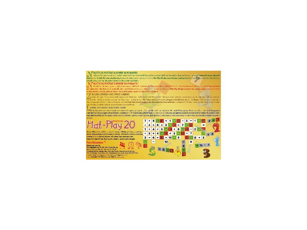 Je vhodná nejen pro ty, kdo chtějí zábavnou formou usnadnit žákům 1. a 2. tříd počítání, tj. sčítání a odečítání do dvaceti; ale hlavně pro ty, kteří vědí, že společné chvíle s dětmi nic nenahradí. Tato hra Vám umožní trávit s dětmi čas tak, aby počítání nevnímaly jen jako nepříjemný požadavek školy, ale jako běžnou součást života, u které se navíc lze velmi dobře pobavit. Hru lze použít jako didaktickou pomůcku pro ZŠ 1.stupně.