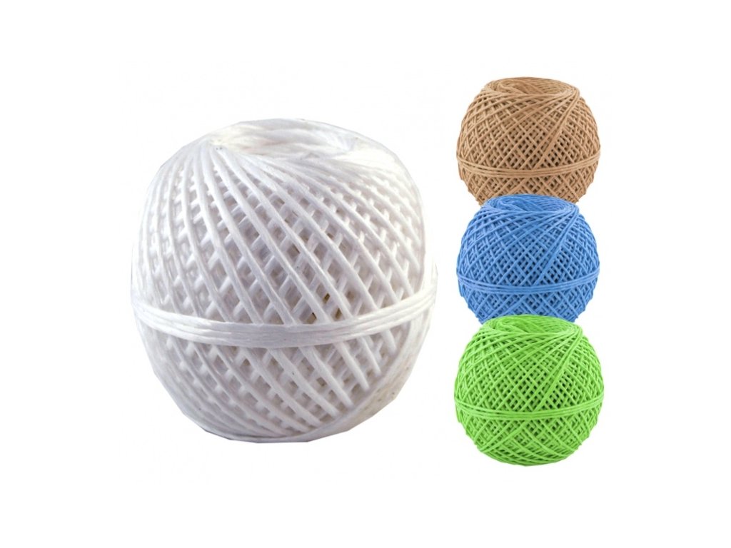 Polypropylenový motouz v různých barvách.
