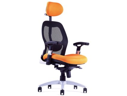 oranžový látkový opěrák a sedák, černý opěrák ze síťoviny