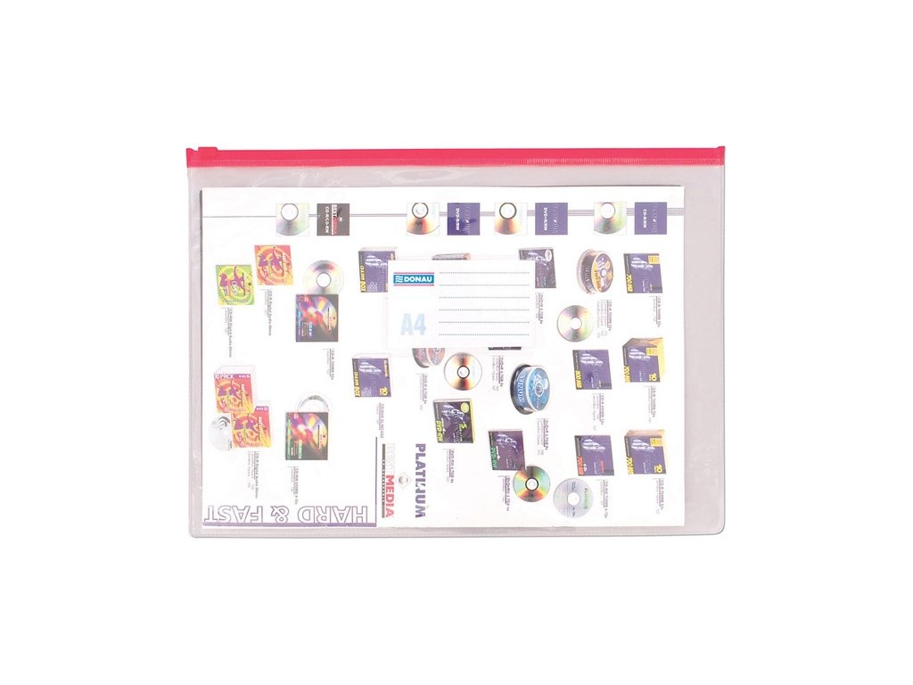 Obálka formátu A4 s plastovým zipem vhodná pro organizaci a ochranu drobných dokladů. Transparentní pevný obal s odolného PVC (170 µm). Barevný plastový zip umístěn na delší straně. Praktický vyměnitelný štítek na vnější straně. Rozměr: 240x330 mm.Doplňkové parametry