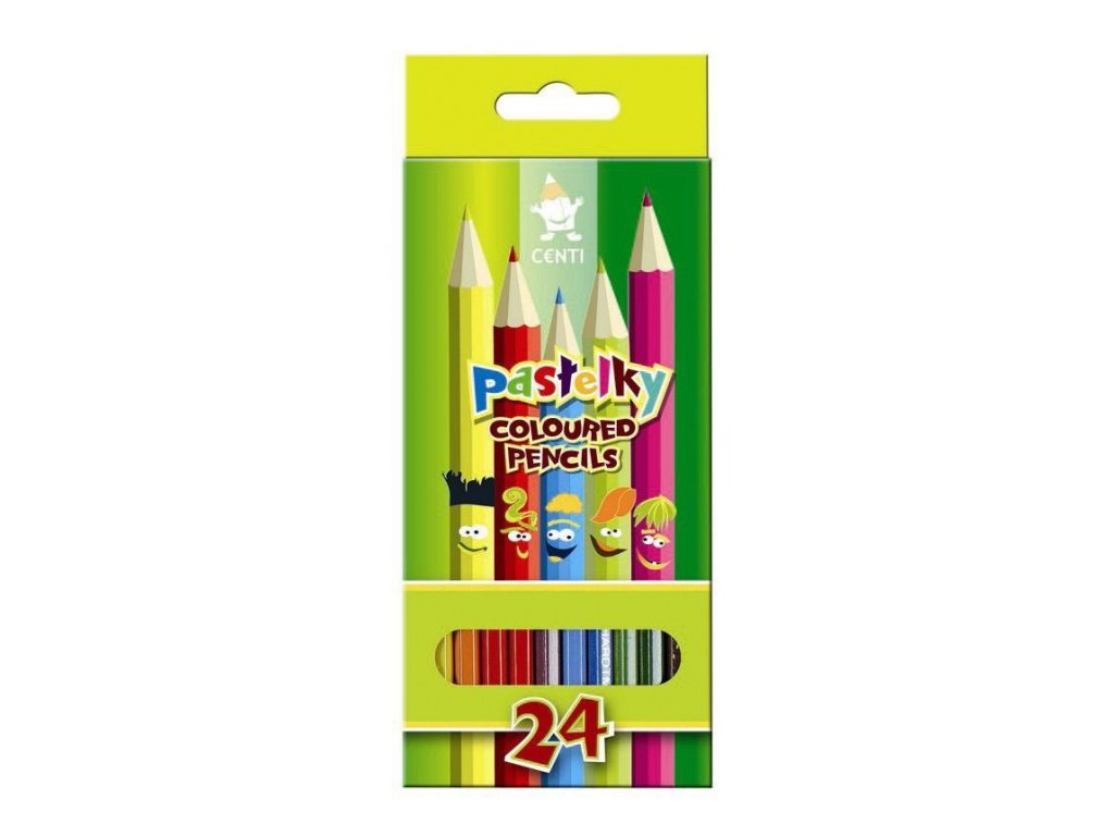 Standardní školní pastelky v šestihranném tvaru. Vhodné pro běžné kreslení. Zanechávají sytou stopu. Balení obsahuje 24 barev. Baleno v papírové krabičce.
