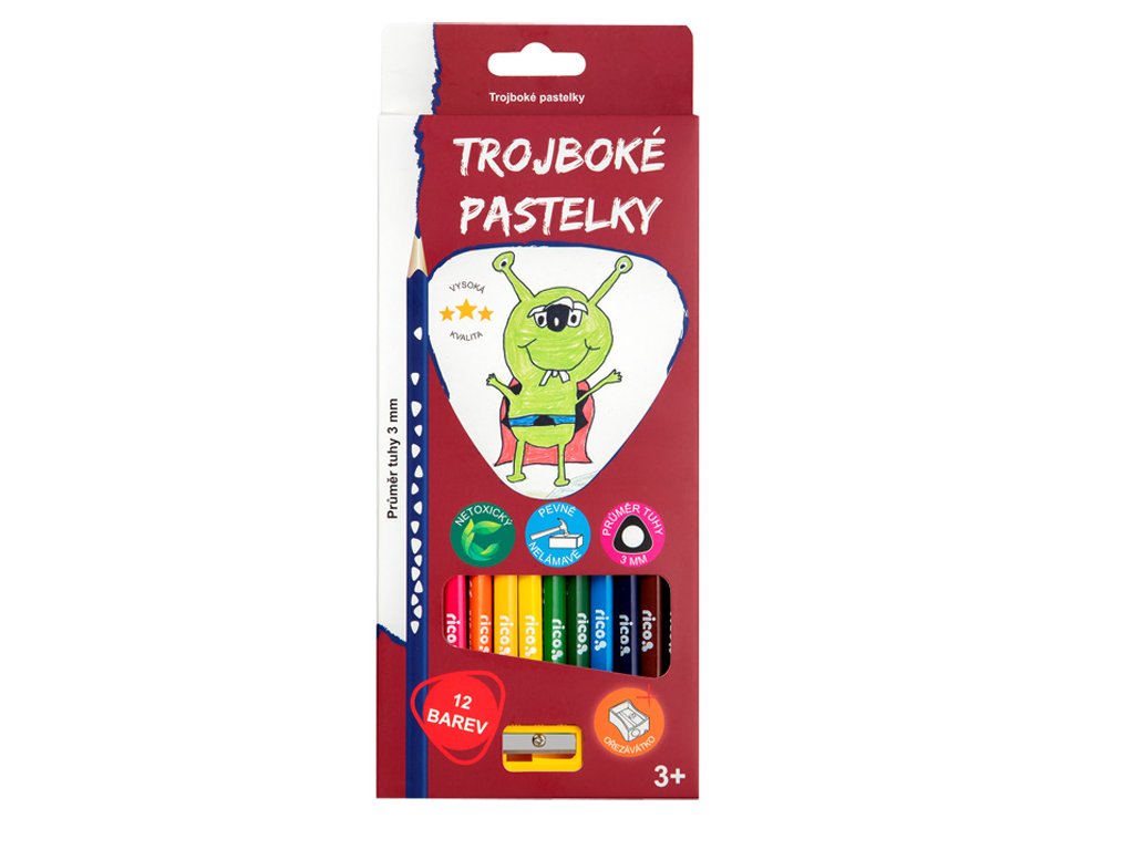 Pastelky Rico trojhranné 12ks + ořezávátko