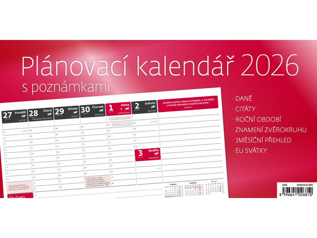 Plánovací kalendář s poznámkami 2026. Vyrobeno v ČRBuďte první, kdo napíše příspěvek k této položce.
