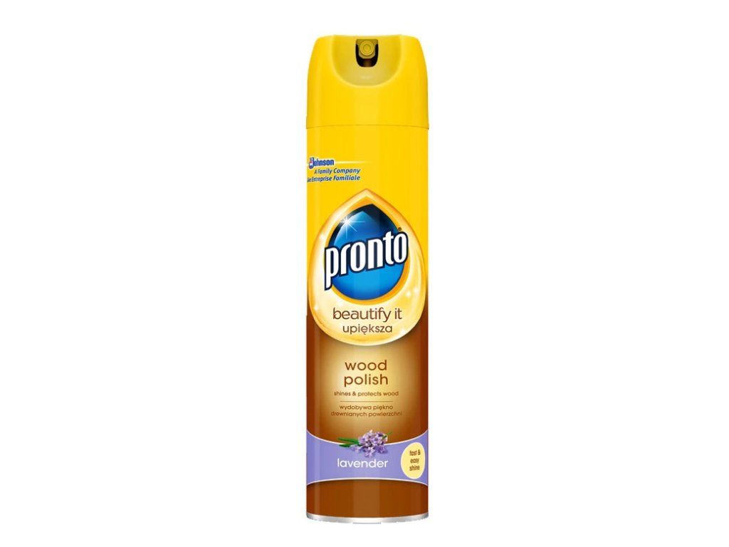 Pronto s vůní Levandule dokonale odstraňuje prach, šmouhy a otisky. Obsahuje antistatické složky, které zabraňují opětovnému usazování prachu. Jemně čistí a odstraňuje prach z kovu, dřeva, skla a elektroniky (kromě plazmových/LCD obrazovek) a vytváří lesk beze šmouh.