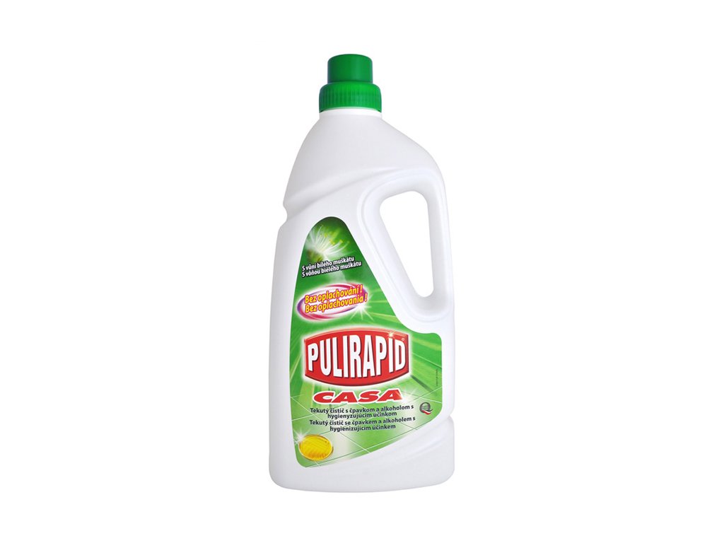 Pulirapid Casa - Univerzální a vysoce efektivní čistič s hygienizujícím účinkem. Přípravek je využitelný na čištění a odmašťování všech typů povrchů v domácnosti. Díky obsaženému čpavku a alkoholu povrchy rychle usychají a zůstávají beze šmouh.