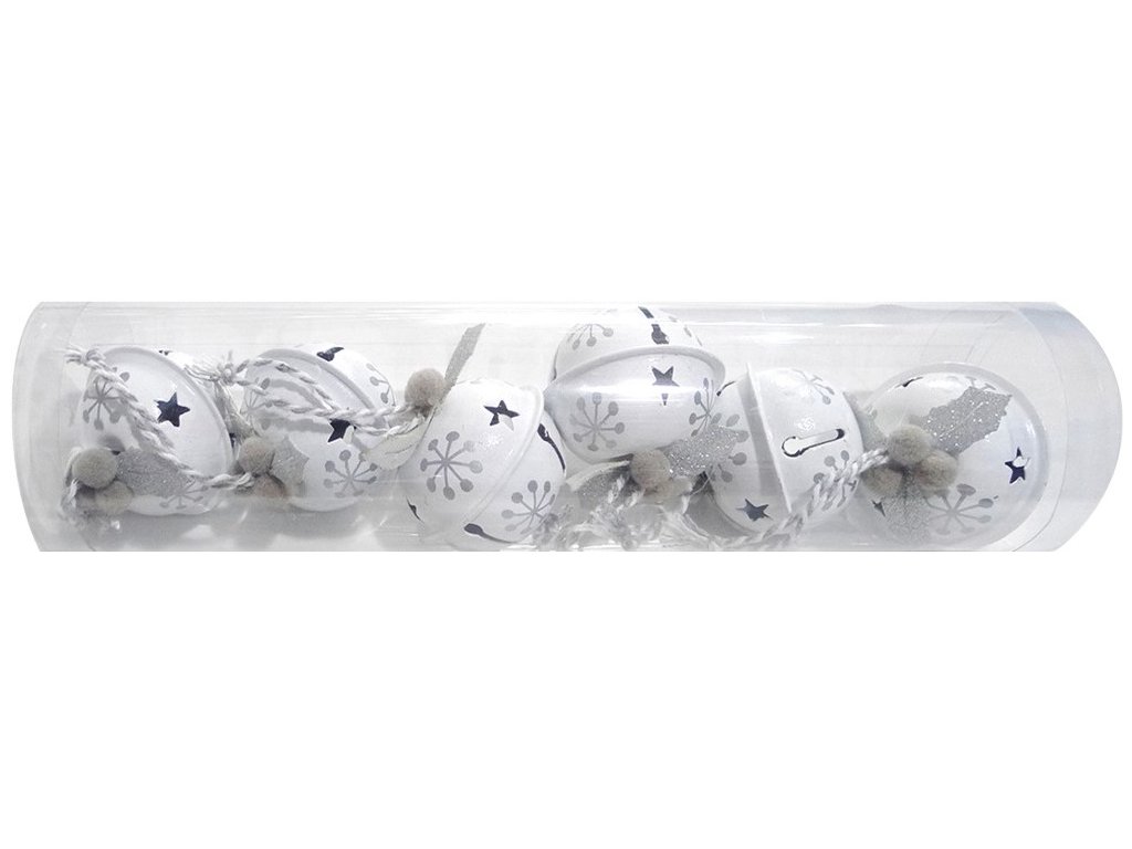 - 5344 - Rolničky 4 cm, 6 ks, bílé se stříbrným potiskem