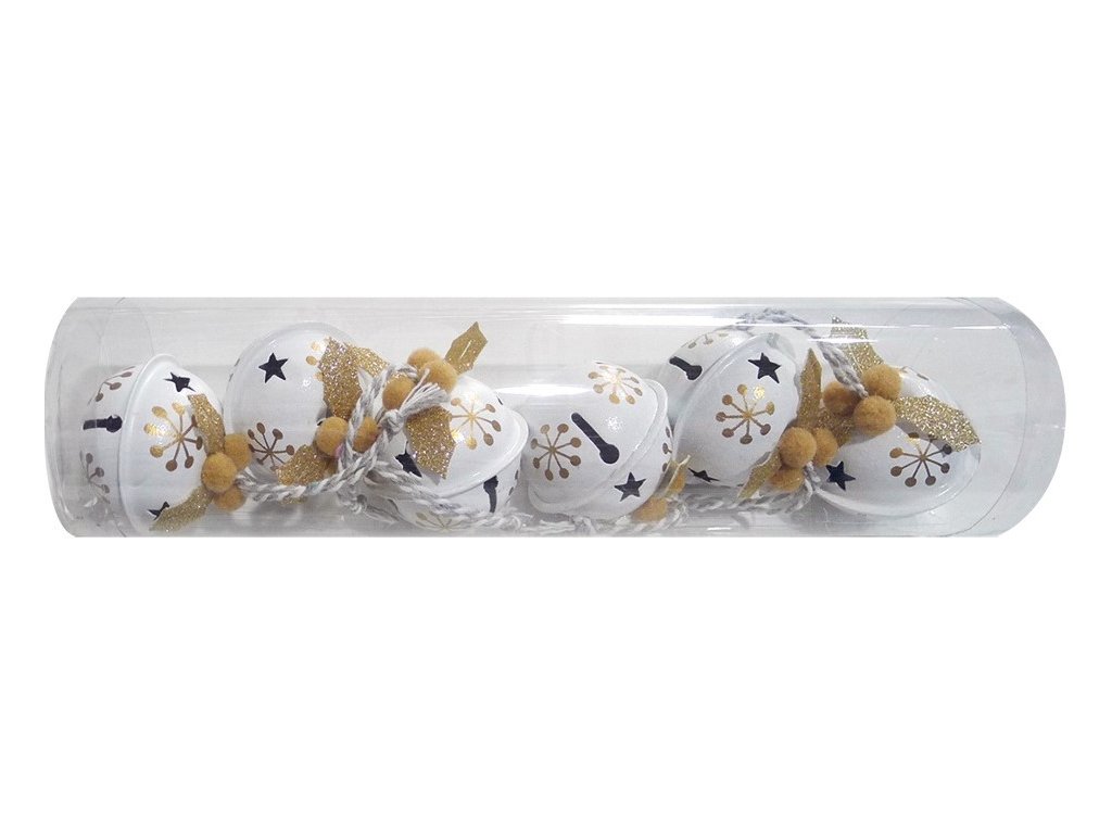 - 5343 - Rolničky 4 cm, 6 ks, bílé se zlatým potiskem