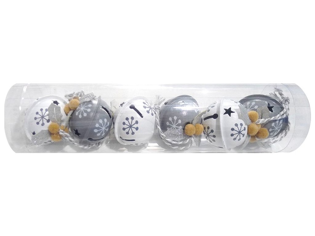 - 5342 - Rolničky 4 cm, 6 ks, šedé a bílé s potiskem