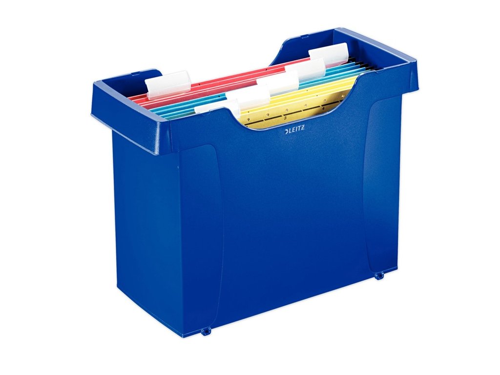 Stolní plastový zásobník na závěsné desky je vyroben z pevného plastu, a umožňuje uložení až 20 kusů desek formátu A4. Součástí balení je 8 závěsných desek s rozlišovači. Díky postranním skrytým držadlům se zásobník snadno přenáší. Modrá barva.p>