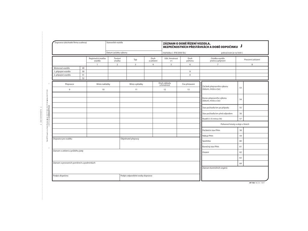 Záznam o době řízení vozidla a bezpeč. přestávkách A4 1166