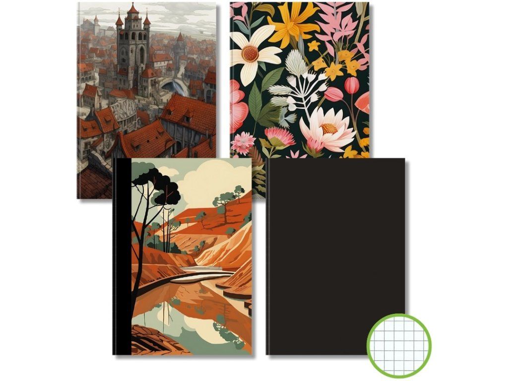 Záznamní kniha s bezdřevým papírem a lesklou laminací. Velký rozsáhlý univerzální zápisník v pevné vazbě se čtverečkovaným papírem.