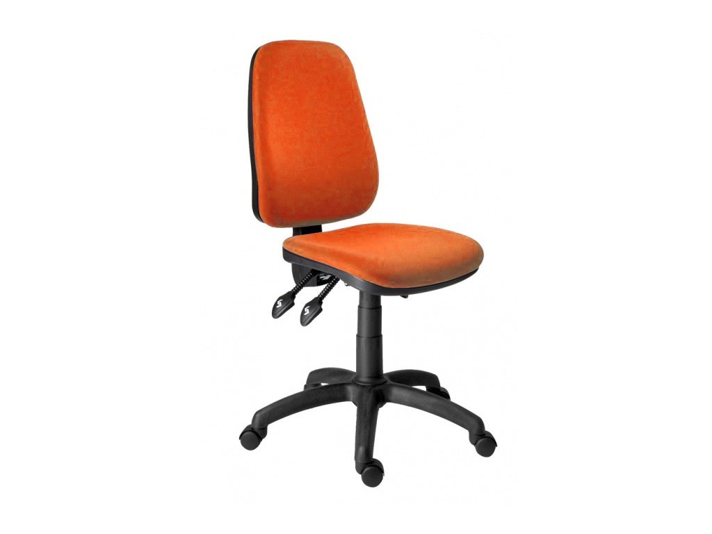 Čalouněná pracovní židle se středně vysokým opěrákem. Asynchronní mechanismus umožňuje nezávislé nastavení úhlu sedáku a opěráku. Výška sedáku a opěráku se nastavuje samostatným plynovým pístem. Pevná plastová podnož. Židle je bez područek. Meruňková barva.