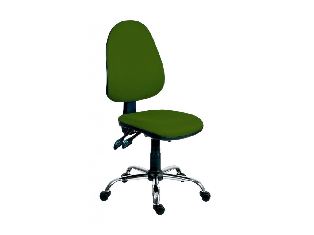 Čalouněná pracovní židle se středně vysokým opěrákem. Asynchronní mechanismus umožňuje nezávislé nastavení úhlu sedáku a opěráku. Výška sedáku a opěráku se nastavuje samostatným plynovým pístem. Moderní design dotváří ocelová chromovaná podnož. Židle je bez područek. Tmavě zelená barva.